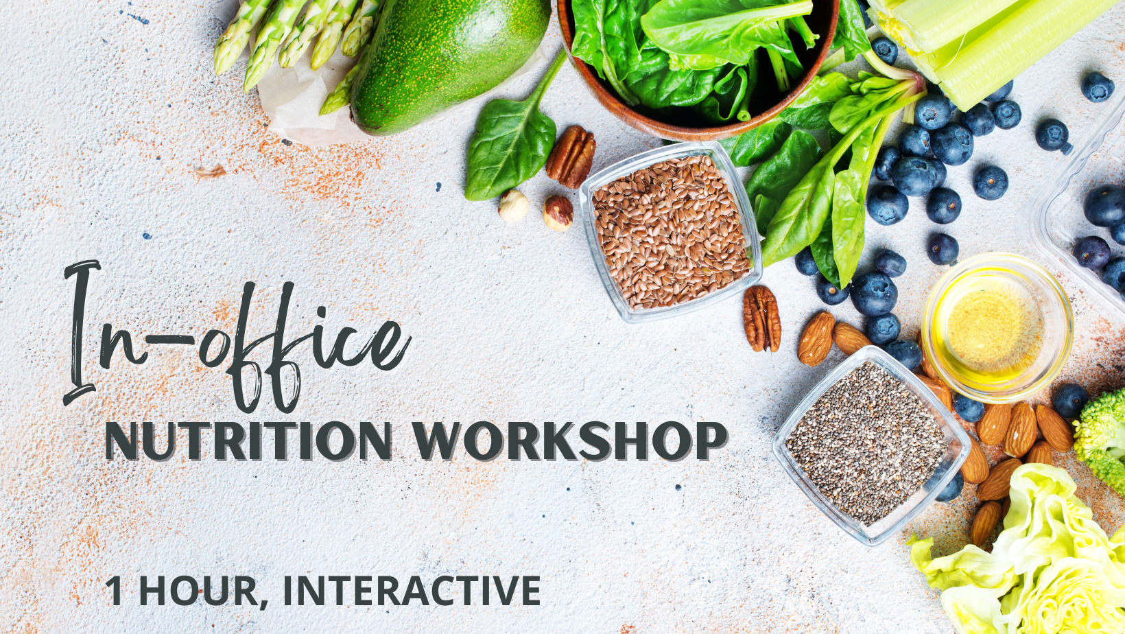 • In-Office Nutrition Workshop – 45 min presentation + 15 min Q & A
